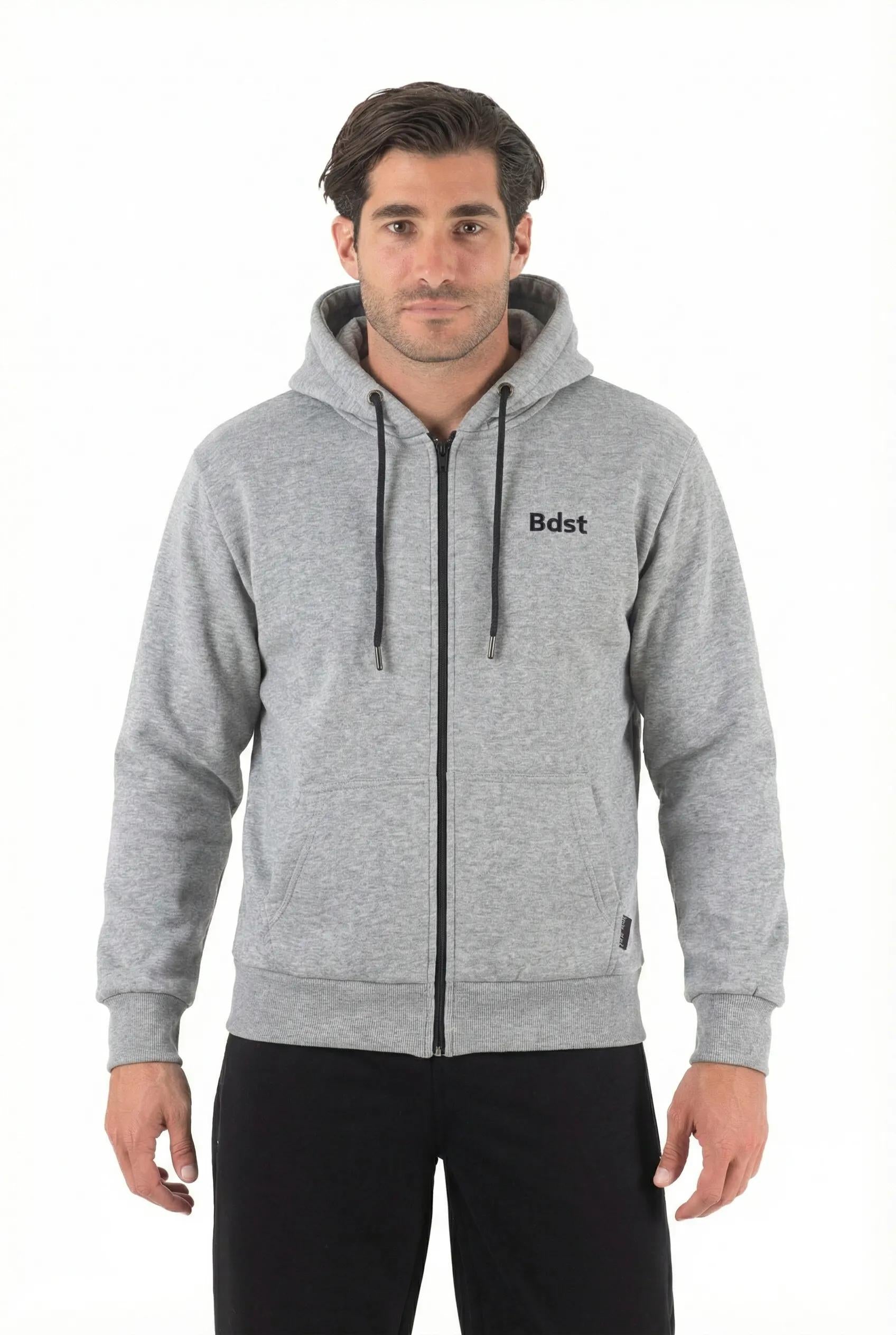 Ανδρική ζακέτα φούτερ με κουκούλα τρίκλωνη (Γκρι)