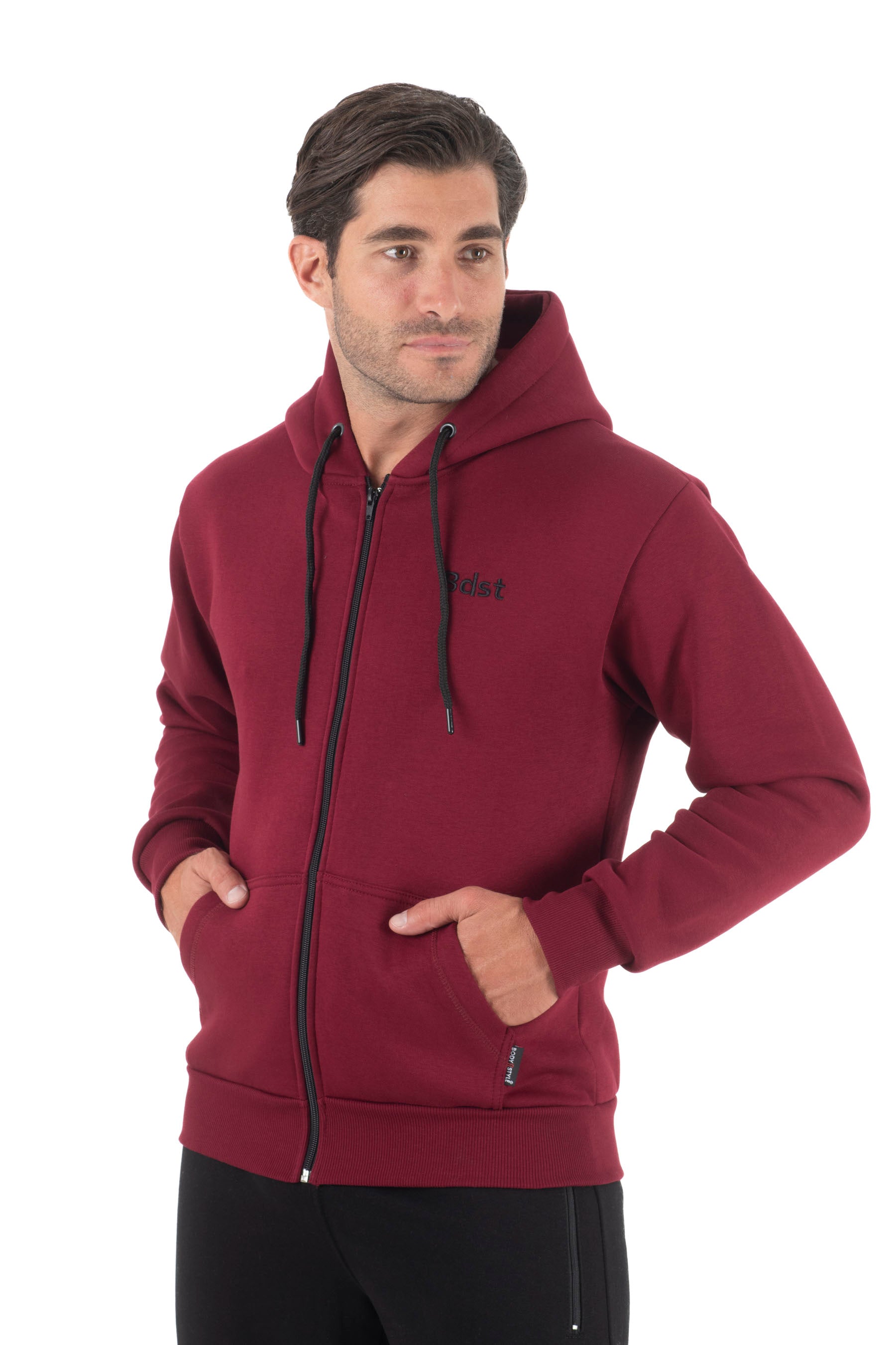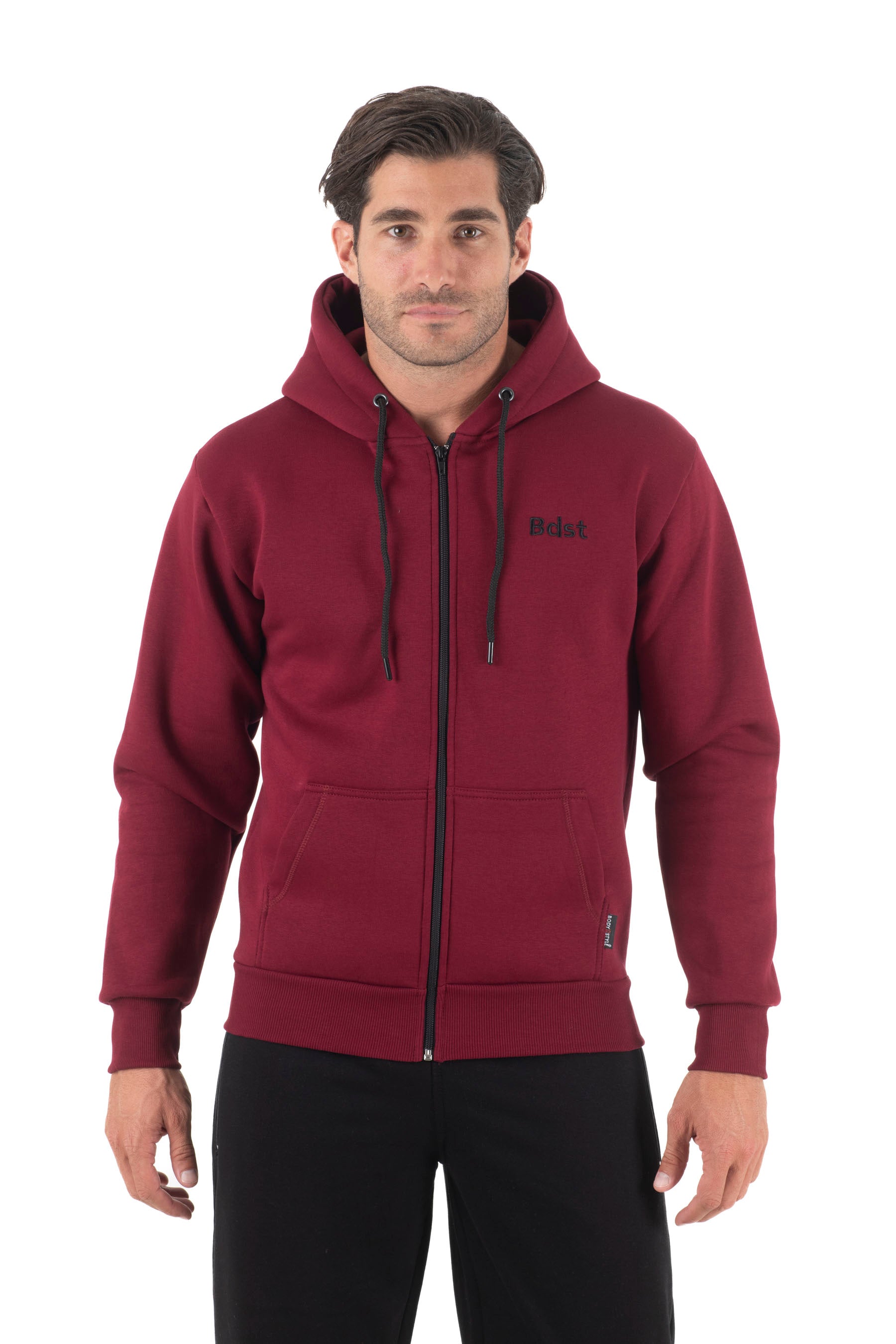 Ανδρική ζακέτα φούτερ με κουκούλα τρίκλωνη (Μπορντό)