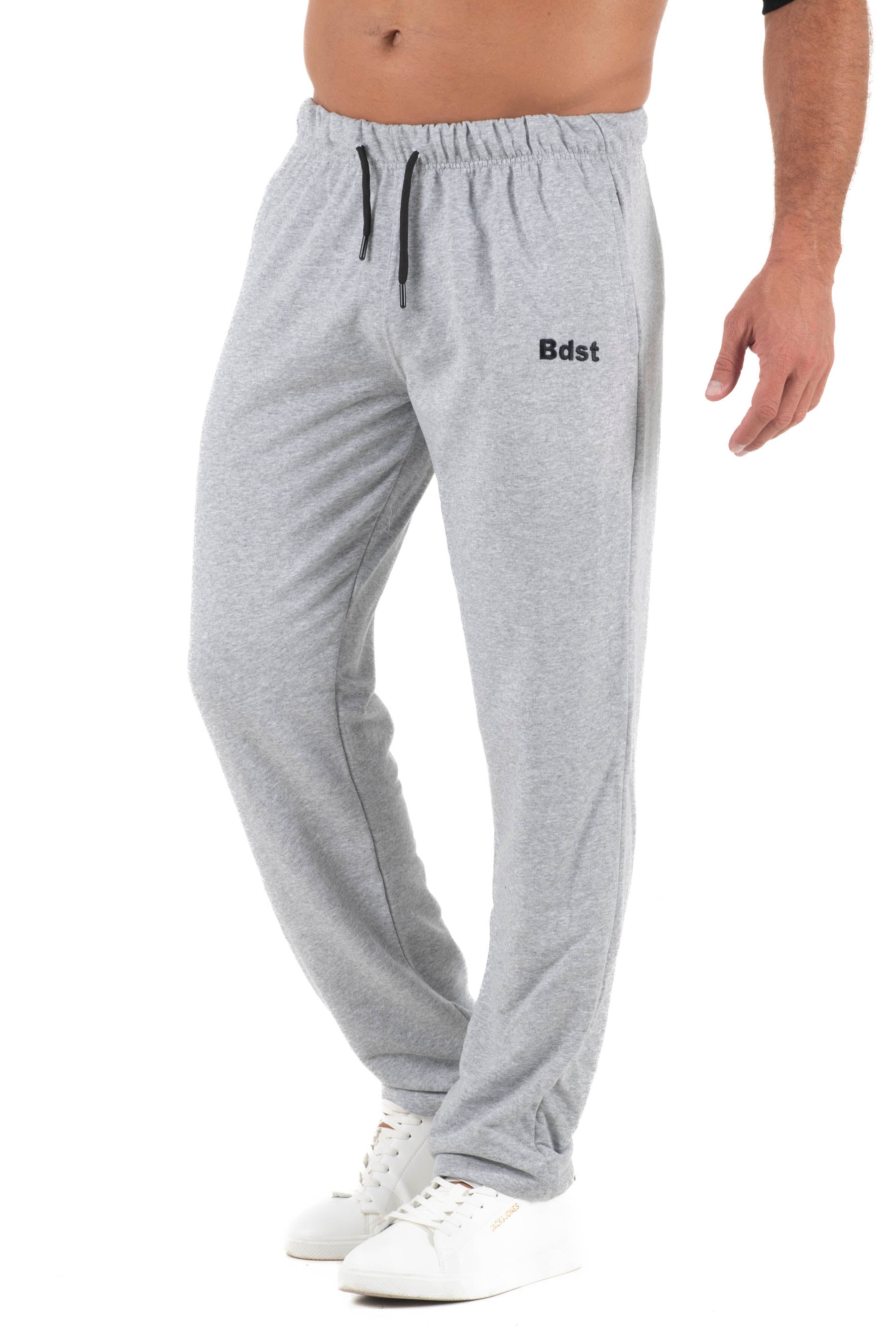 Ανδρικό παντελόνι φόρμας ίσιο τρίκλωνο χωρίς χνούδι (Γκρι)