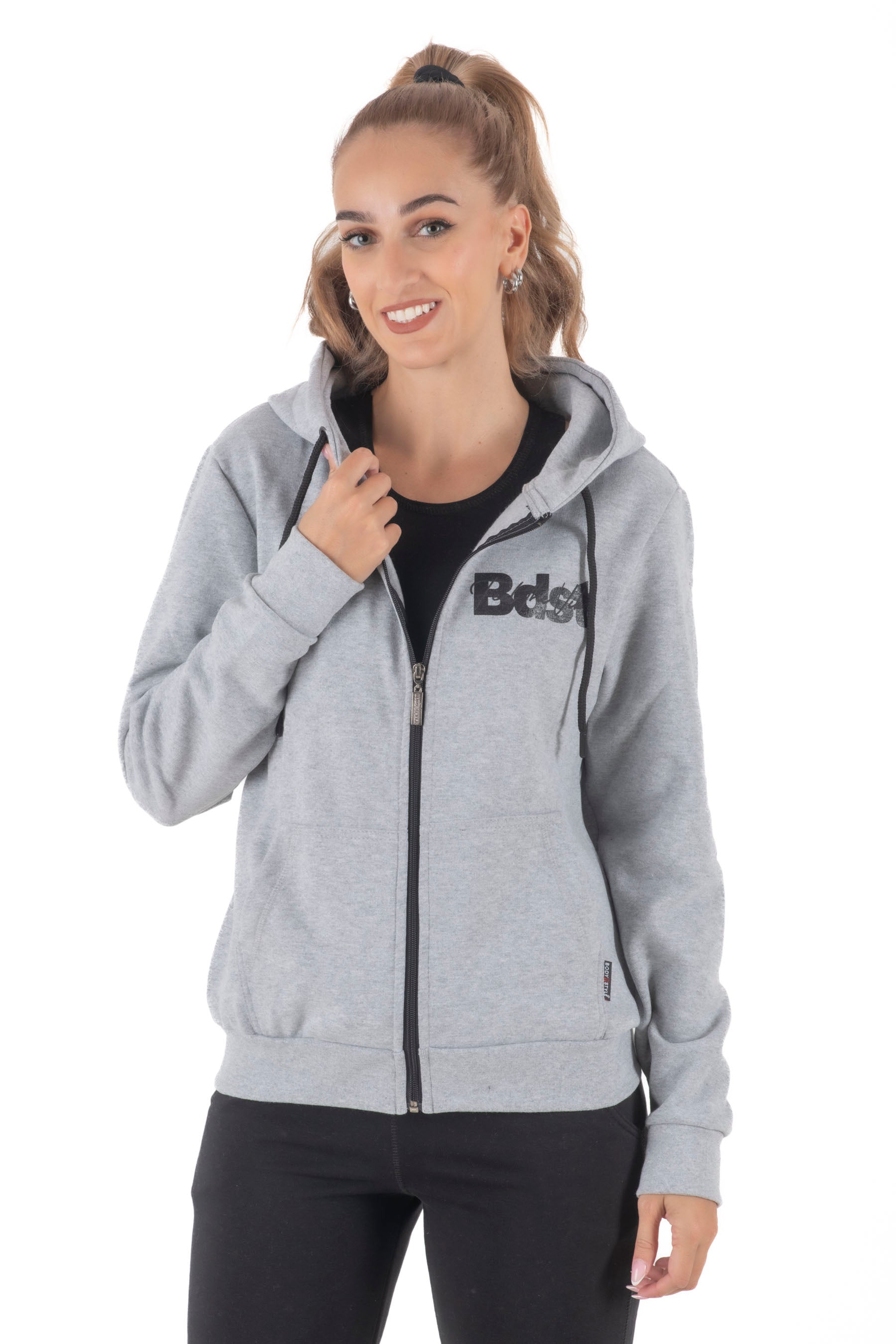 Άνετη γραμμή, μαλακό ύφασμα, δίκλωνη, διπλή κουκούλα με επένδυση, κορδόνι στην κουκούλα, φερμουάρ, τσέπες άνετες.